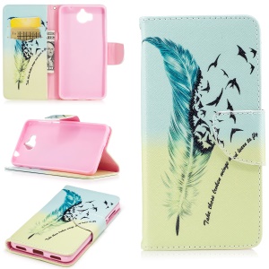 $2.17 Pattern Printing Wallet Leather Stand Case for Huawei Y5 (2017) - Feather Pattern#1002165