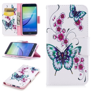 $2.39 Pattern Printing Wallet Stand Leather Case with Magnet for Huawei P10 Lite - Butterfly Flower#1163586