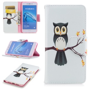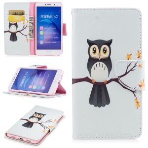 $2.39 Pattern Printing Magnetic Leather Wallet Phone Casing with Stand for Huawei Honor 6x (2016) - Owl#1162541