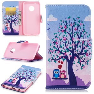 the same price Pattern Printing Leather Wallet Case for Motorola Moto E4 US Version - Pink Owl and LOVE Pattern#1175891