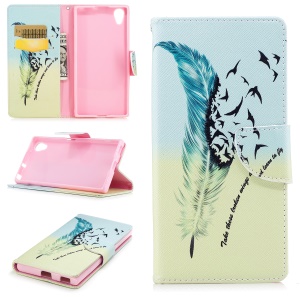 $2.39 Pattern Printing PU Leather Wallet Stand Mobile Phone Case for Sony Xperia XA1 Plus - Feather and Birds#1192131