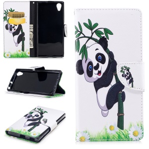 $2.39 Pattern Printing PU Leather Wallet Stand Mobile Phone Case for Sony Xperia XA1 Plus - Panda On Bamboo#1192029