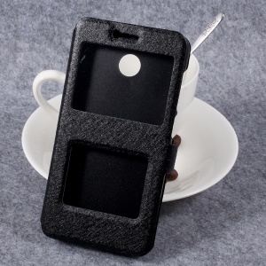 Silk Texture Dual Window Leather Mobile Cover for Xiaomi Redmi 4X - Black