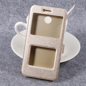 Silk Texture Dual Window Leather Phone Cover with Stand for Xiaomi Redmi 4X - Gold