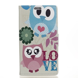 the same price Pattern Printing PU Leather Wallet Stand Protective Phone Casing for Wiko Tommy 2 - Owl Couple#1187385
