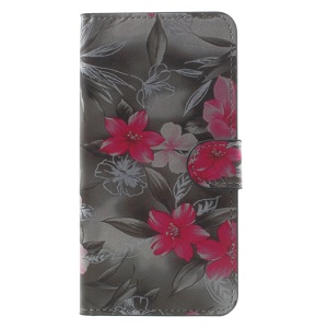 Patterned Leather Wallet Mobile Phone Case with Stand for Xiaomi Redmi Note 4 - Red Blooming Flowers
