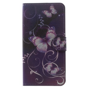 For Xiaomi Redmi Note 4 Patterned Leather Wallet Stand Mobile Casing - Purple Butterflies