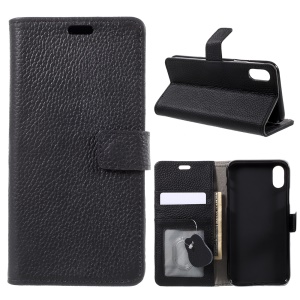 $7.81 Litchi Grain Genuine Leather Wallet Cover for Wiko Robby 2 - Black#1224383