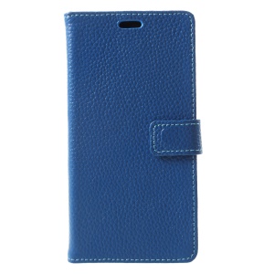 $7.81 Litchi Texture Genuine Leather Wallet Stand Protective Cover for Wiko Robby 2 - Blue#1224302