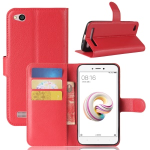 Litchi Skin PU Leather Wallet Stand Phone Cover for Xiaomi Redmi 5A - Red