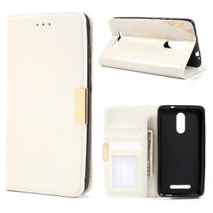the same price Litchi Grain Genuine Leather Wallet Stand Cell Phone Cover for Wiko Tommy 2 - White#1187519
