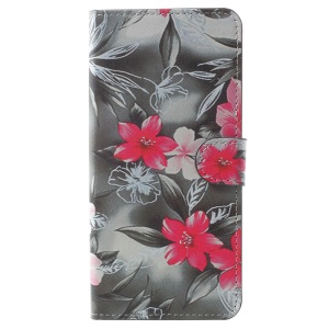 $2.04 Pattern Printing Leather Wallet Phone Case with Stand for Samsung Galaxy A8 Plus (2018) - Red Flower#1229717