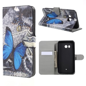 $2.04 Pattern Printing Wallet Leather Stand Folio Case for HTC U11 - Blue Butterfly#1168648