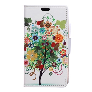 the same price Pattern Printing Wallet Stand Leather Shell for Asus Zenfone 4V V520KL - Colorful Flower Tree#1175824