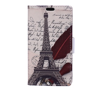 the same price Pattern Printing Leather Wallet Phone Casing for Asus Zenfone 4V V520KL - Eiffel Tower and Quill-pen#1175617