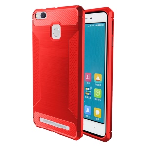 For Xiaomi Redmi 3/3s/3pro/3x Carbon Fibre Texture Non-slip Brushed Thin TPU Cell Phone Shell - Red