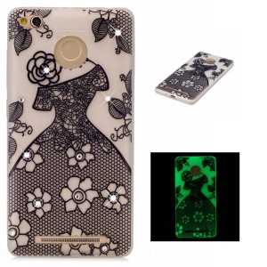 Rhinestone Decoration Embossed Luminous TPU Case Accessory for Xiaomi Redmi 3s - Beautiful Skirt