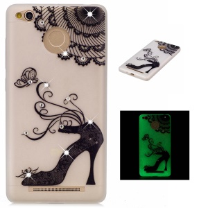 Luminous Rhinestone Decor Embossment TPU Shell Cover for Xiaomi Redmi 3s - High heels