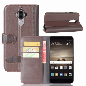 the same price Genuine Split Leather Wallet Mobile Phone Case with Stand for Huawei Mate 9 - Brown#1004464