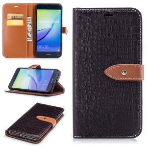 $2.65 Crocodile Texture Flip Leather Wallet Mobile Phone Shell for Huawei P10 Lite - Brown#1163862
