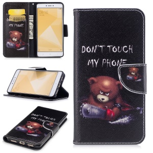 Pattern Printing Leather Wallet Phone Case for Xiaomi Redmi Note 4X - Brown Bear