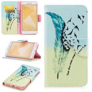 Pattern Printing PU Leather Wallet Case Accessory for Xiaomi Redmi Note 4X - Feather Pattern