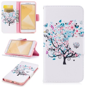 Pattern Printing Leather Wallet Mobile Cover with Stand for Xiaomi Redmi Note 4X - Flowered Tree