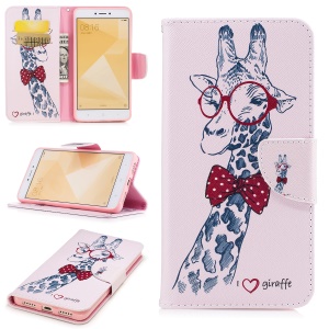 Pattern Printing PU Leather Wallet Shell for Xiaomi Redmi Note 4X - Adorable Giraffe Wearing Glasses