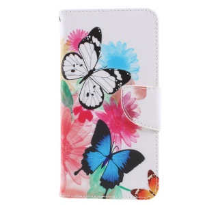 For Xiaomi Redmi Note 4X Pattern Printing Leather Wallet Cell Phone Cover with Stand - Butterfly and Flowers