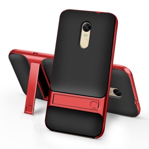 ELEGANCE Grid Pattern TPU + PC Kickstand Combo Shell for Xiaomi Redmi Note 4X - Red