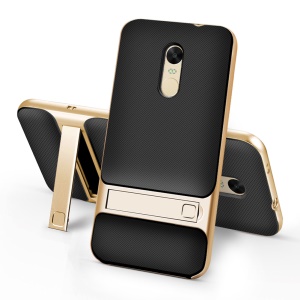 ELEGANCE Grid Pattern TPU + PC Kickstand Combo Phone Cover for Xiaomi Redmi Note 4X - Gold