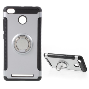 Magnetic Ring TPU PC Hybrid Case with Kickstand for Xiaomi Redmi 3s - Silver