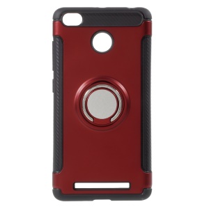 Magnetic Ring Kickstand TPU PC Shell Cover for Xiaomi Redmi 3s - Red