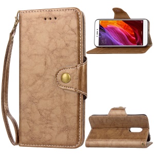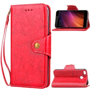 Oil Wax Retro Style Button Closure Wallet Leather Stand Cover for Xiaomi Redmi 4X - Red