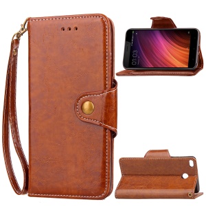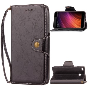 Oil Wax Retro Style Button Closure Card Holder Leather Cover Case with Stand for Xiaomi Redmi 4X - Brown