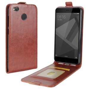 Crazy Horse Leather Vertical Card Slot Mobile Cover for Xiaomi Redmi 4X - Brown